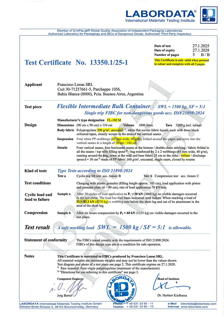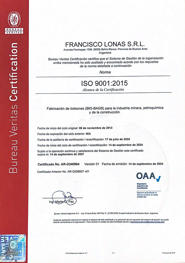 Francisco Lonas S.R.L. es una empresa familiar que cuenta con dos unidades de negocios, una de las cuales está dedicada a la fabricación y comercialización de Big Bags, y la otra a la lonería industrial.